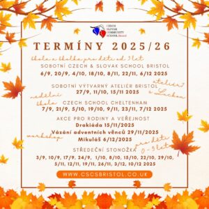 26. 10. 2025 Broowkood – od 13:15 vzpomínkového setkání v Brookwood u pomníku československým vojákům, kde společně s dětmi a pedagogy nejen z naší školy, ale i z dalších českých a slovenských škol v Británii zazpíváme českou, slovenskou a anglickou hymnu Memorial Association for Free Czechoslovak Veterans (MAFCSV)