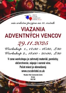 30. 11. 2024 Adventní věnce (workshopy) – Viazanie adventych vencov (14.30-16.30 nebo 18-20) v Meadow Vale Community Centre